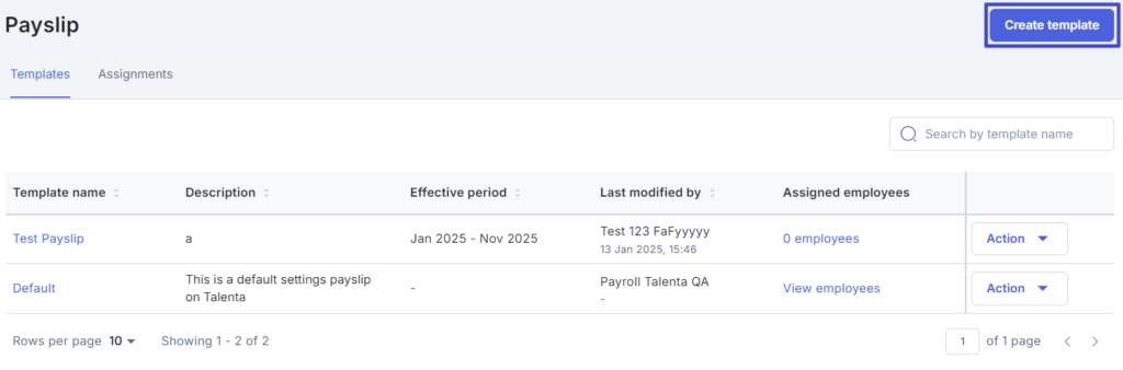 - Untuk membuat payslip template, klik “Create template”.