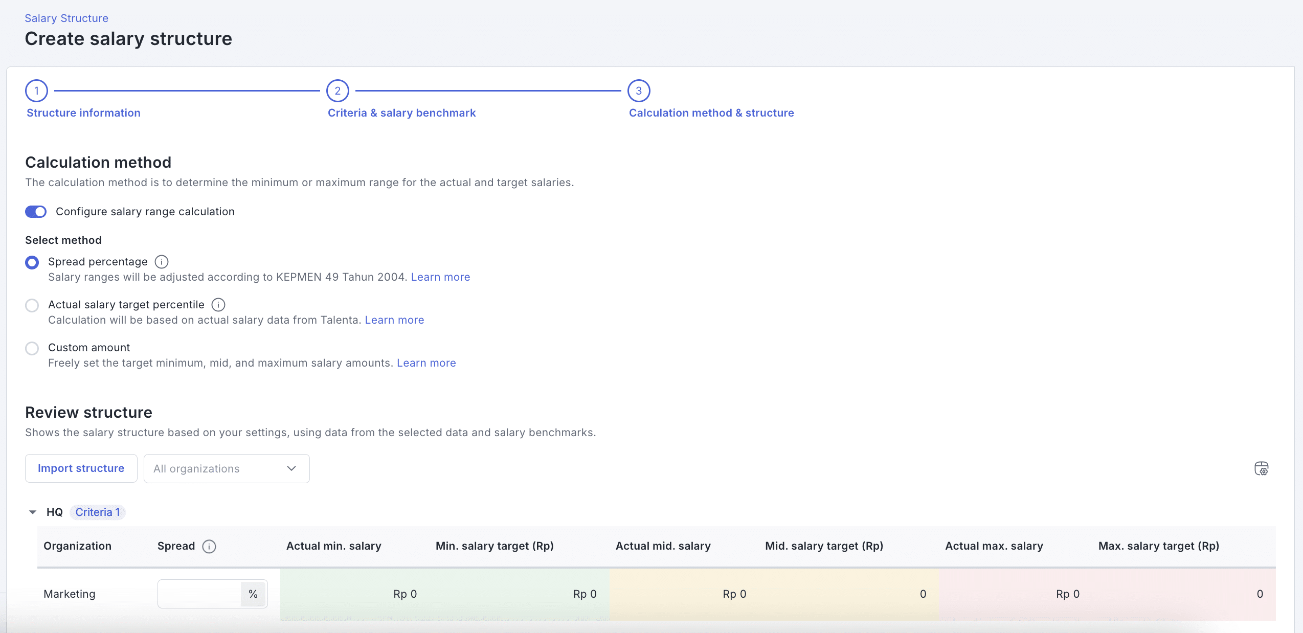 Untuk mengatasi hal tersebut, perusahaan membutuhkan sistem yang lebih terstruktur dan terintegrasi. Melalui Salary Structure di Talenta, perusahaan dapat menyusun, mengelola, dan memantau struktur gaji secara terpusat sehingga lebih konsisten, transparan, dan sesuai regulasi.