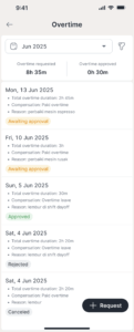 ✅ Proses pengajuan lebih transparan dan efisien.2. Pengaturan Lembur Lebih Fleksibel per Shift