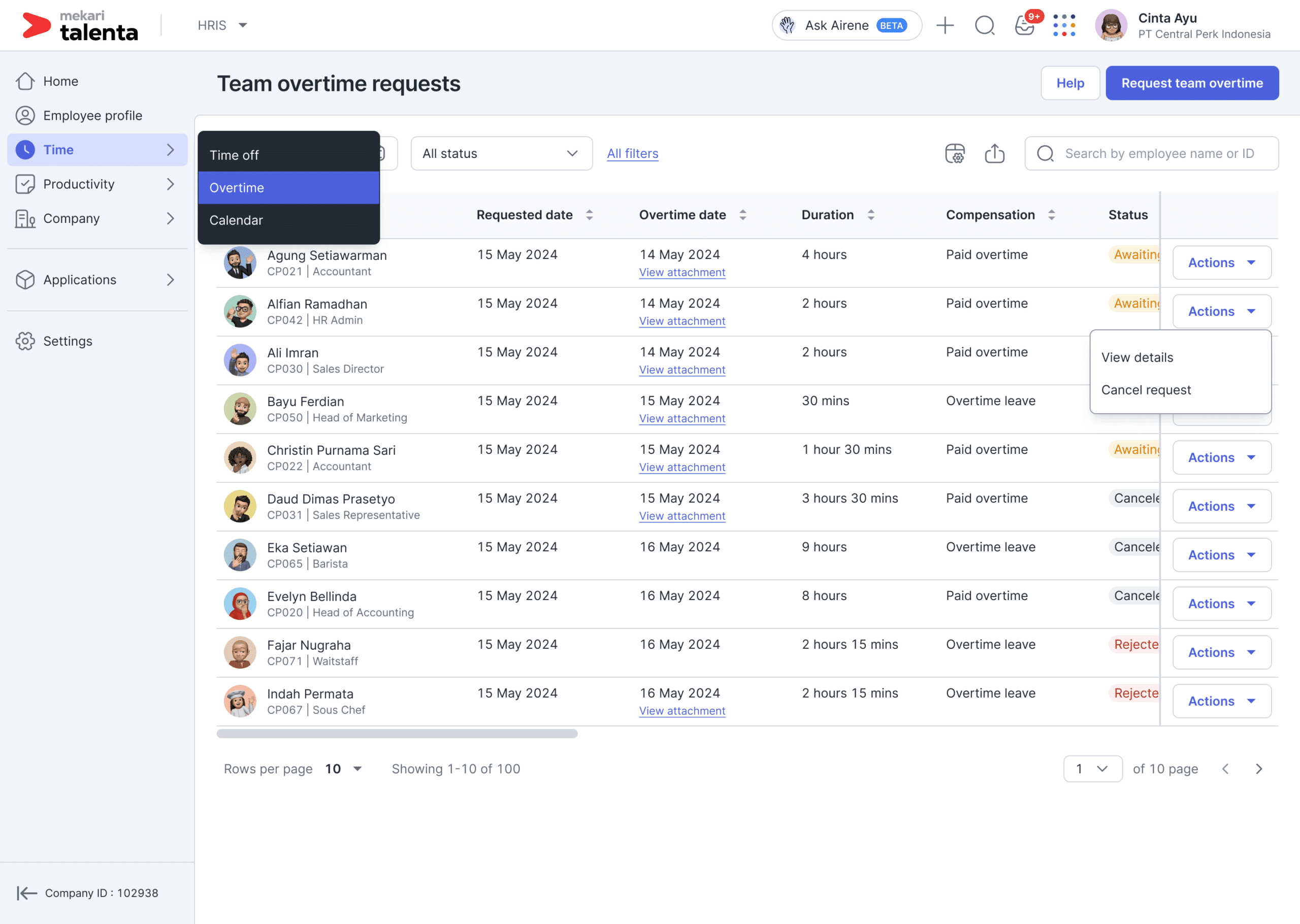 ✅ Manager/leaders lebih mudah membantu tim mengajukan cuti dan lembur.
