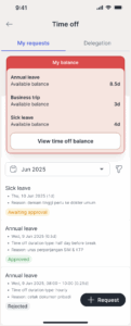 ✅ Menghemat waktu administrasi HR dan mengurangi kesalahan input.3. Ajukan cuti & lembur untuk tim lewat web dan mobile